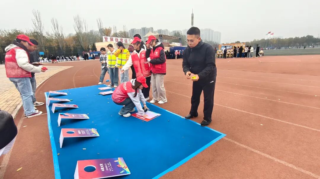 蓝色地垫铺就的“灭火投准”游戏区,堪称全场“人气王”!同学们手持模拟“灭火弹”,瞄准目标反复调整投掷角度——这看似轻松的玩乐,实则是对“火灾扑救需精准”的生动科普。消防志愿者全程在旁手把手引导,及时纠正动作偏差,详解“瞄准火源根部”等关键原理,让每一次投掷都变成微型“安全实训”,真正实现“玩中学、学中记”!