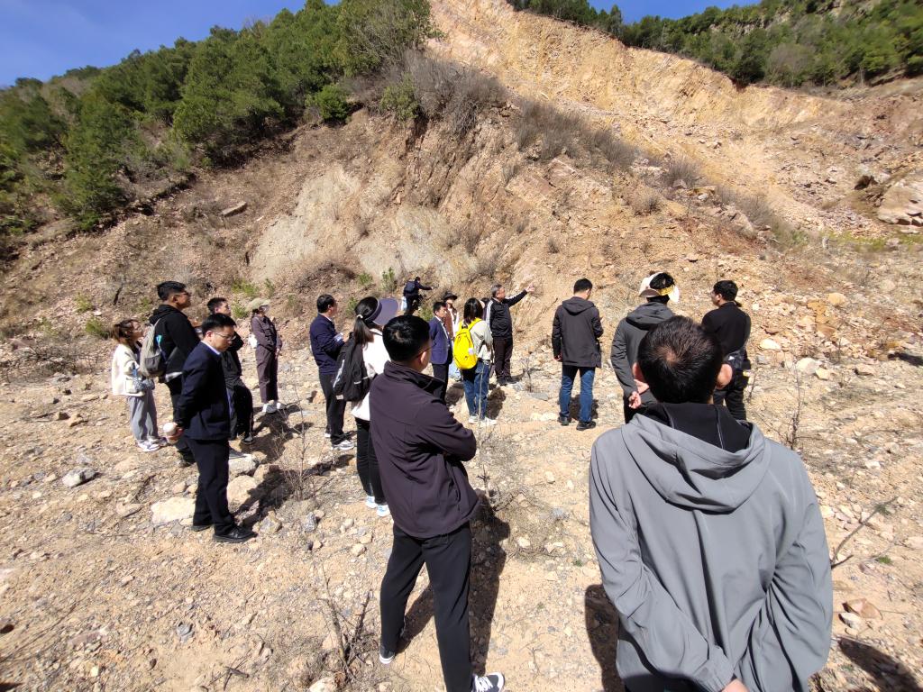 应中煤地华盛山西公司邀请,我系教师赵庆珍、王路、王小敏、陈小珍和李祥与中煤山西分公司总经理杨艳涛、党委书记吕利强等一行20多人于2024年3月30日一同前往吕梁交城水峪贯地区,开展“校企融合,双向赋能”野外地质考察。
