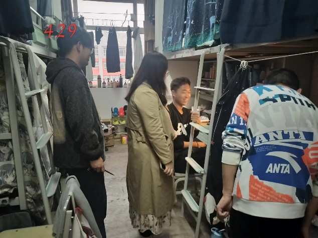 次走访主要围绕寝室卫生、寝室安全隐患排查等方面开展工作。经过走访,我系各宿舍在安全、卫生等方面整体表现良好,宿舍环境干净、整洁,宿舍用电规范。但是仍存在个别宿舍卫生状况不达标情况,督促其尽快整改,并随时复查。在走访过程中陈凤杰老师强调同学们在日常生活中务必注意财产安全,谨防诈骗,注重用电安全,规范宿舍行为,保持宿舍整洁,保障宿舍安全,为共同营造美好校园做贡献!