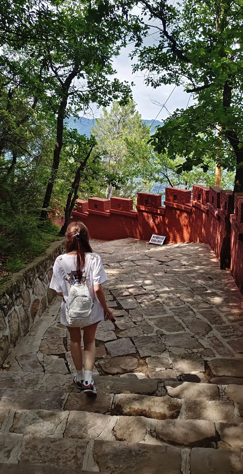 清晨,队员们在宿舍楼下集合完毕后,满怀期待地奔赴天竺景区。面对3700级阶梯,队员们选择徒步攀登上山。一路上,阶梯蜿蜒向上,仿佛与天空相连,山间树木郁郁葱葱,枝叶在微风中轻轻摇曳,为前行的队员们遮挡炽热的阳光,空气中弥漫着泥土与草木的清香,沁人心脾。