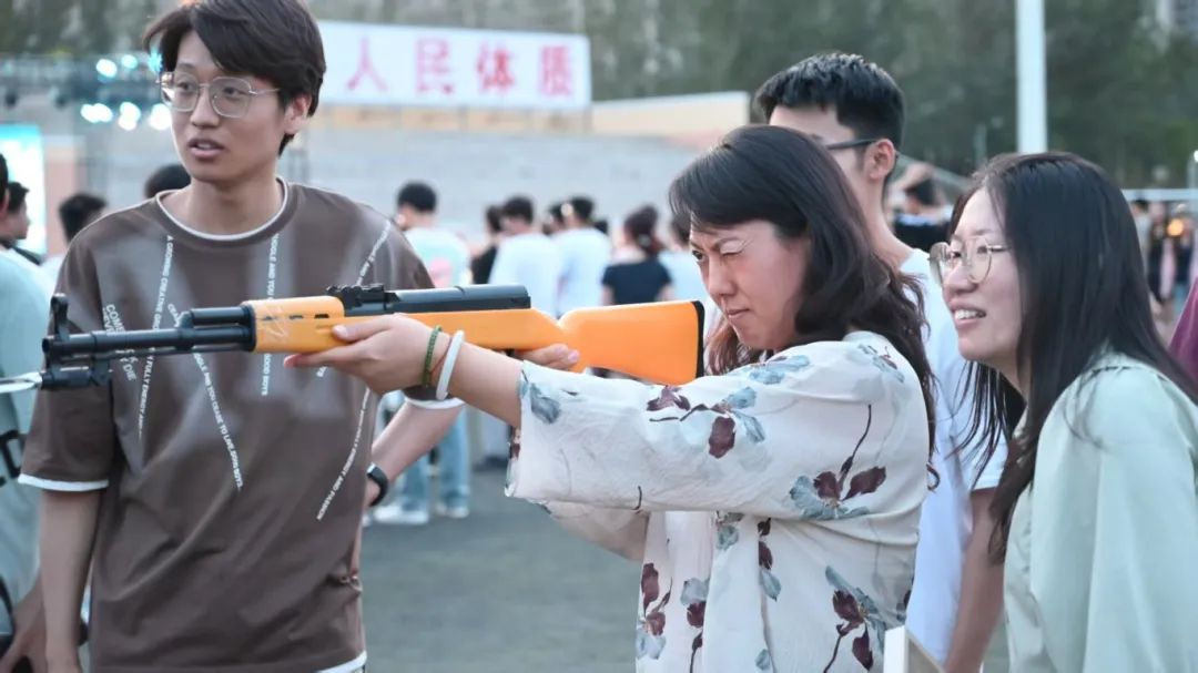 电气与控制工程系在毕业晚会设置了诸多有趣的小游戏,投壶、套圈、猜成语等,每通关一个游戏,就可以得到一个贴纸,集齐所有贴纸可以兑换精美礼品,小游戏吸引了众多学生的参与,当晚,操场上人山人海,毕业生享受着在学校的最后时光,玩游戏,看节目,回忆大学四年的美好生活,老师们也来参加游戏,欢送毕业生。