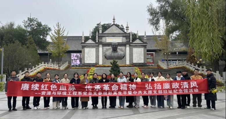 为深入推进党史学习教育常态化长效化,激励广大师生党员坚定理想信念、强化宗旨意识、筑牢廉政防线,10月21日下午,资环系党总支组织师生党员前往彭真生平暨中共太原支部旧址纪念馆,开展主题为“赓续红色血脉 传承革命精神 弘扬廉政清风”主题党日活动。