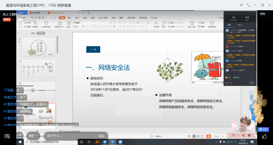 为预防网络诈骗,我系组织各班围绕网络安全开展主题班会,将以上内容由班长讲给同学们,提高我系同学的安全意识。