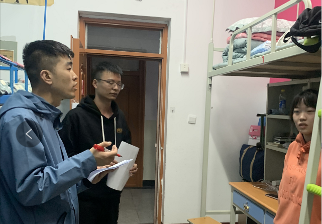 系书记及新生班主任于11日晚深入新生宿舍,关心慰问我系20级新生。了解学生思想、学习、生活、安全情况,推进宿舍文化建设。