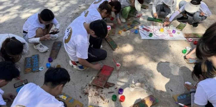 为贯彻党的二十大精神,助力古交建设“宜居宜业和美乡村”,7月7日早餐过后,实践队员们集聚在新房村党群服务中心大院内,利用废旧木板、画笔和颜料,充分发挥各自的想象力制作环保标志牌,用实际行动为推动古交绿色发展增砖添瓦。