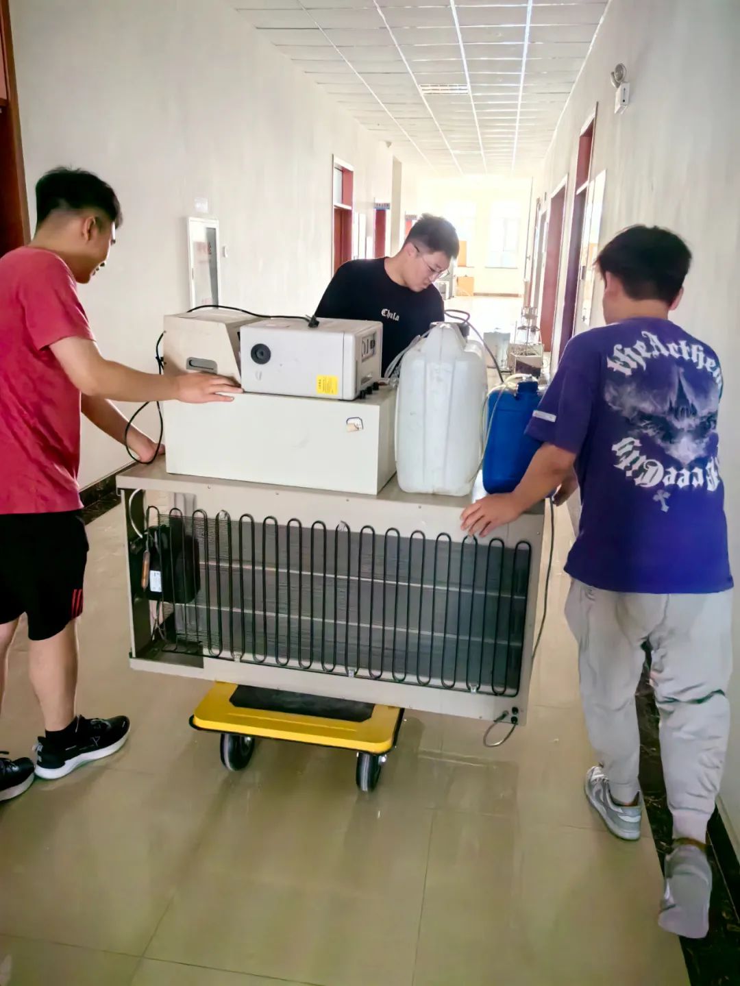 活动开始前,老师对同学们进行了必要的实验室安全培训,确保每位参与者都了解实验室安全规范和必要性,并且分配了必要的清洁工具如扫帚、簸箕和垃圾袋,戴上手套和口罩,大家分组开始负责对不同区域进行卫生大扫除。同学们迅速响应,明确分工,高效协作。在拆卸、搬运、安装仪器的过程中,学生们展现了高度的责任心和团队精神。