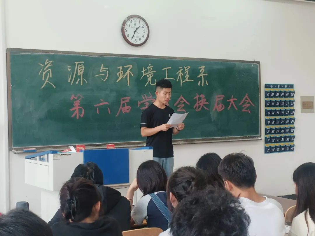 9月6日中午,资源与环境工程系学生会换届大会在综合楼110教室成功举办。资源与环境工程系党总支副书记任丽霞,团委学工办副主任李晓建,专职辅导员田晓晖以及学生会主席团各部门负责人共同参与了本次大会。