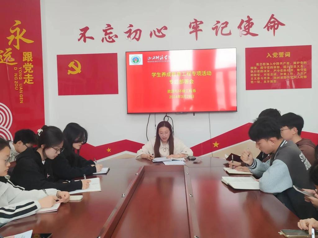 为积极落实响应永利官网“双养工程”的号召,全面落实立德树人根本任务,进一步提升教育质量,培养我系学生的综合素质。3月28日中午,资源与环境工程系于产学研401会议室召开学生养成教育工程活动动员部署会议。团委学工办副主任李晓建老师主持此次会议,我系各班团支书与班长以及学生会干部参会。