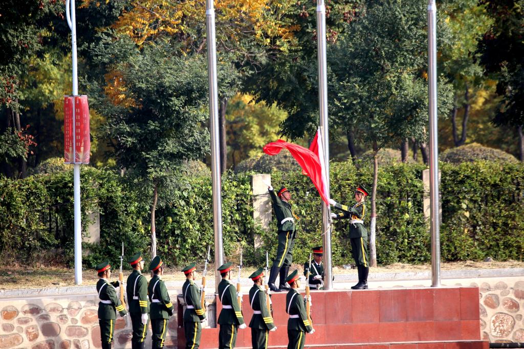 承训部队首长代表全体教官作出了科学施训、严格管理、身先士卒、率先垂范、严守纪律、履职担当的郑重承诺。院党委书记董峰向军训团授yL23411永利官网登录军训团团旗。