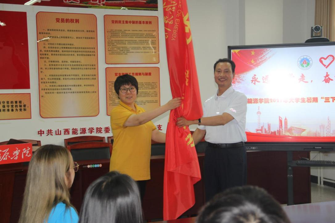 随后校党委副书记张春有为实践队出征授旗并讲话。针对同学们此番社会实践的目的地都在农村,他结合党史学习教育,从毛泽东同志的“农村是一个广阔的天地,在那里是可以大有作为的”谈起,谈到青年习近平的延安七年知青岁月磨炼,带领大家共同学习了习近平总书记“七一”讲话中有关青年的论述。张春有副书记语重心长地寄语同学们,每个人都有属于自己的人生,我们所产生的每个想法,进行的每一次尝试,做出的每一份努力,经历的每一段体验,都弥足珍贵,是无价之宝。点点滴滴都会在未来以某种方式让你成为更好的自己,让你与众不同,遵从自己的内心,开创属于自己的天地。他指出,作为新时代的中国青年,要努力在实践中增长知识、锤炼品格;在实践中增长才干、练就本领;在实践中担当使命、不负韶华。他希望同学们珍惜这次机会,把握好这次经历,在服务群众、奉献社会中提升专业水平和综合能力,做走在时代前列的奋进者、开拓者、奉献者!