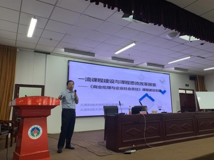 太原科技大学刘传俊教授做了题为《一流课程建设与课程思政改革探索》的培训。解读了一流课程的建设背景、发展历程、指导纲要、基本原则、实施意见等,并将太原科技大学的做法和经验进行了分享。刘教授提倡青年教师采用线上、线下的混合式教育方式。并突出强调了课程思政案例特点、形式、要素分类、教学方法等。