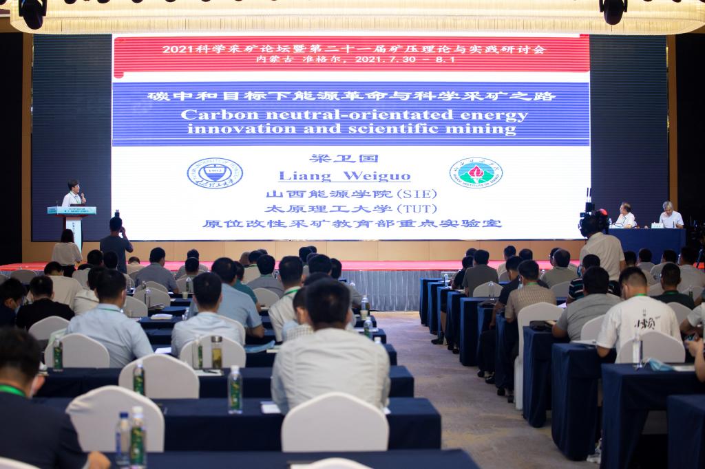 我院院长梁卫国教授出席开幕式,并作了“碳中和目标下能源革命与科学采矿之路”的主题报告。