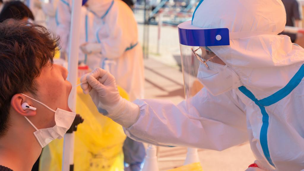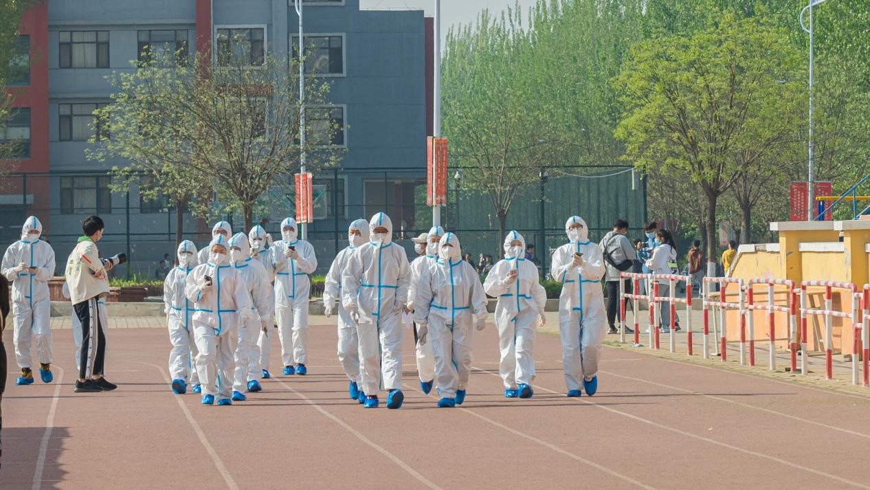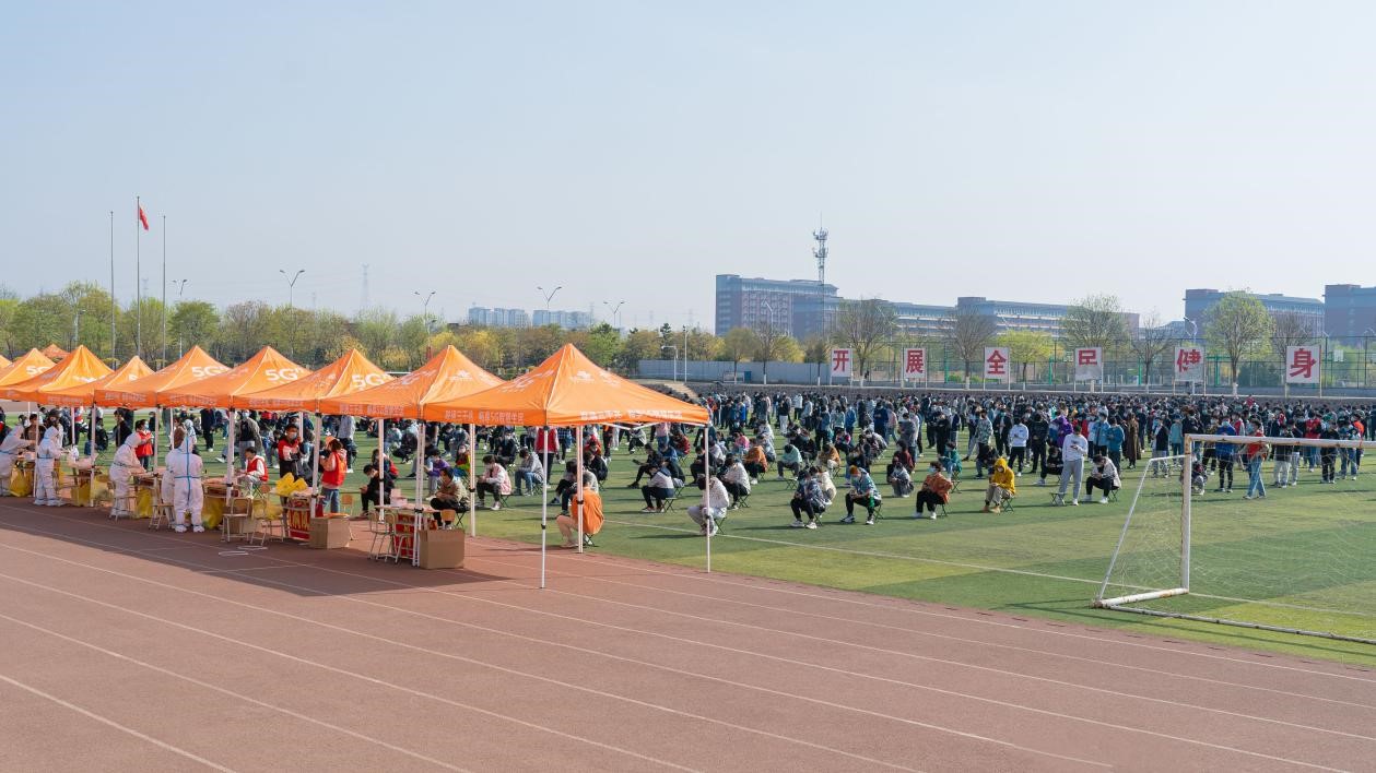 被采样人员全程佩戴口罩、积极配合医护人员工作,场内场外都间隔一米距离,有序排队。“大白”们有条不紊地进行着采样工作,值班教师、志愿者们都积极配合医务人员,维持现场秩序及扫码采样工作。