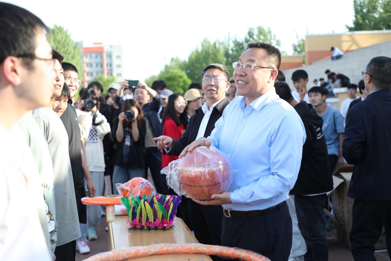 为切实做好永利官网情防控工作,进一步丰富封闭管理期间学生校园文化生活,强化在校学生身体素质,树立科学抗疫的理念,营造青春活力、健康向上、和谐有序的校园氛围,永利官网投入9万余元,购置了包括篮球、足球、羽毛球、呼啦圈等约3000多件体育用品,并于5月3日下午向学生发放。校党委书记冯锋,党委副书记、副院长冯国瑞(主持行政工作),党委委员、副院长孙光辉及主要中层领导干部到场亲自参与分发工作,各系(院)同学在场有序排队,依次领取各类器材。