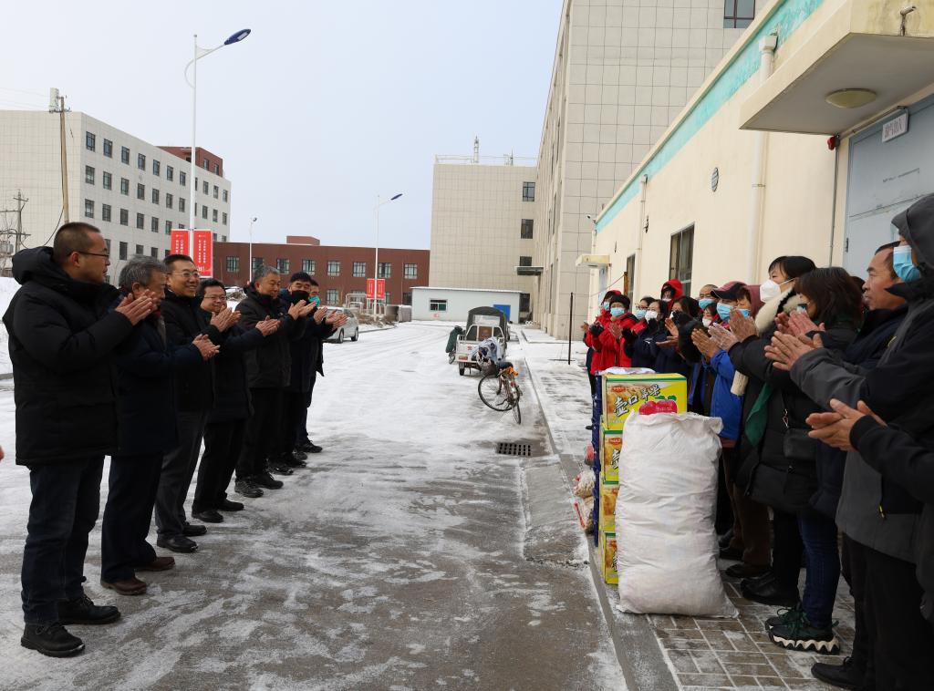 1月14日上午,农历小年,瑞雪兆丰年,衷心祝福至,校党委书记冯锋,党委副书记、副院长(主持行政工作)冯国瑞,党委委员、宣传统战部部长、办公室主任张玉福等先后到许坦校区和榆次校区看望慰问坚守在一线的工作人员,并送去了新春祝福、对联和慰问品等。同时,对许坦校区固定资产的盘活利用、榆次校区后勤保障及校园安全进行了调研。