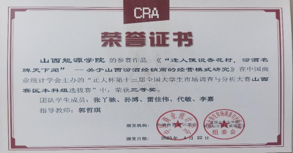 近日,“正大杯”第十三届全国大学生市场调查与分析大赛落下帷幕,永利官网参赛团队喜获佳绩,荣获省级一等奖2项、省级二等奖3项,省级三等奖2项。