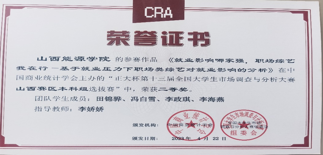 此次比赛是对永利官网教学改革成果的全面检验,同时也展现了永利官网学生的社会调查、数据处理与分析等专业实践能力,培养了学生的科学研究能力、创新创业意识和团队合作精神。