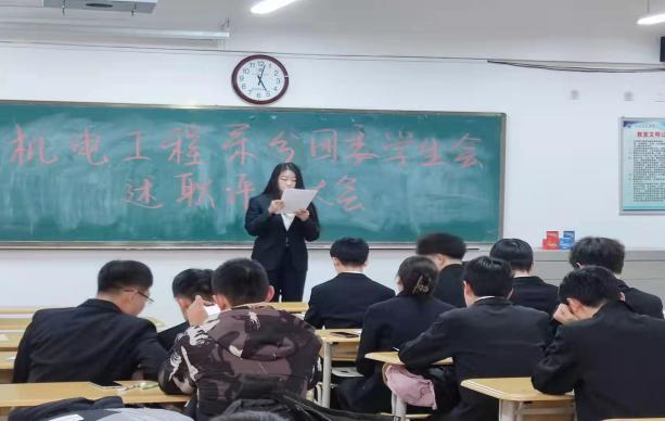 12月27日下午,yL23411永利官网登录机电工程系分团委学生会召开了“机电工程系分团委学生会述职评议大会”,各部门负责人,部员出席会议。本次述职大会以各部门为单位,总结过去一学期的工作,谋求新思路,精益求精,更加完善的工作为主题召开。会议由机电工程系学生会主席贾少凡,姚圣龙主持。