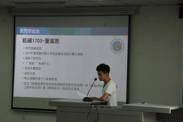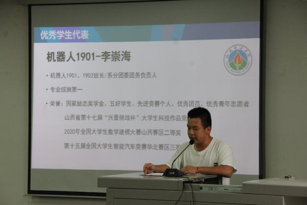 优秀学生党员王光耀和优秀学生干部李崇海,就自身的学习和班级工作,与大家进行了交流。并代表参会学生,祝即将毕业的学长学姐们前程似锦,未来可期。