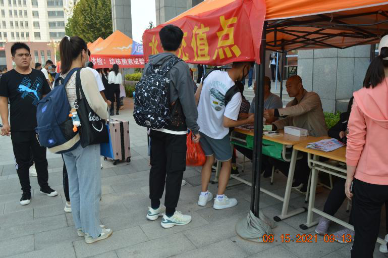 1.新生抵达学院南门后,对其行李进行消杀、检测体温,出示本人身份证、录取通知书、行程码、健康码引导新生进入校园。