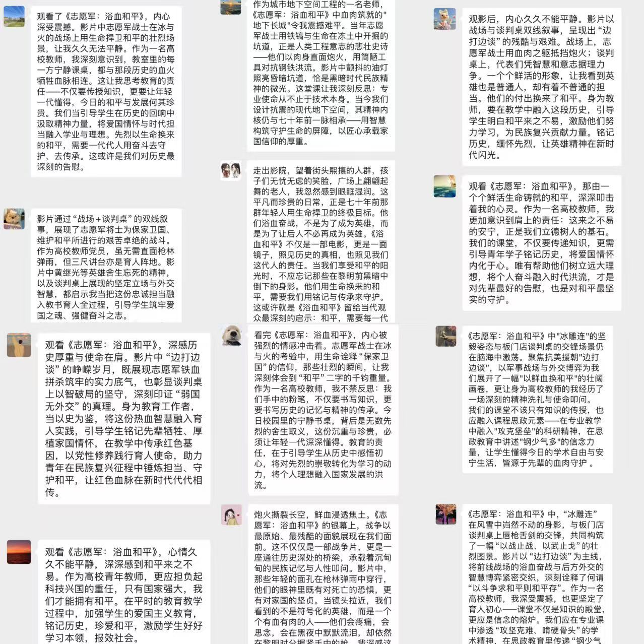 观影结束后,党员同志们纷纷表示,观看电影后心潮澎湃,深受震撼,深感历史厚重与使命在肩,并主动发表观影心得,大家深刻认识到,今天的和平生活来之不易,是无数革命先烈以血为墨书写的史诗,我们要铭记历史,缅怀先烈,传承红色精神,主动将个人理想融入国家发展,在新时代征程中书写青春华章。