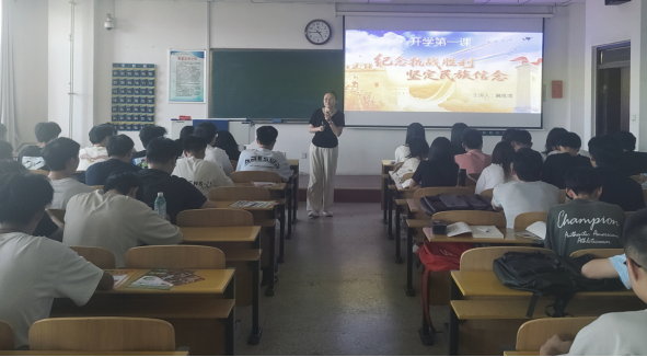 为隆重纪念抗日战争胜利80周年,进一步推进爱国主义教育,助力青年学生厚植家国情怀、筑牢思想根基,推动立德树人根本任务落地见效,新学期伊始,思政部精心组织开展了以“纪念抗战胜利,坚定民族信念” 为主题的开学第一课宣讲活动。此次活动旨在通过回顾抗战历史、讲述英雄事迹和开展互动讨论,帮助广大师生深刻感悟伟大抗战精神的时代价值,激发大家传承红色基因、勇担时代使命的责任感与使命感。