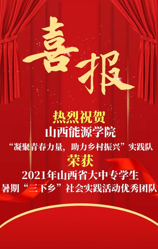 近日,2021年山西省大中专学生暑期文化科技卫生“三下乡”社会实践活动重点团队评选结果公布。在本次活动中,我院“凝聚青春力量,助力乡村振兴”实践队荣获2021山西省大中专学生暑期“三下乡”社会实践活动优秀团队。