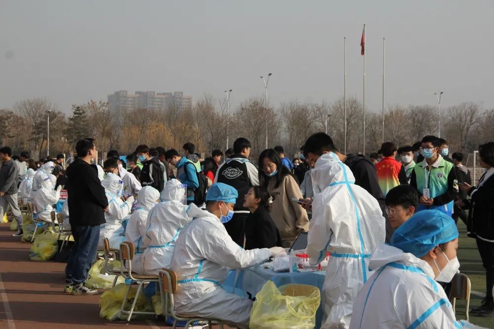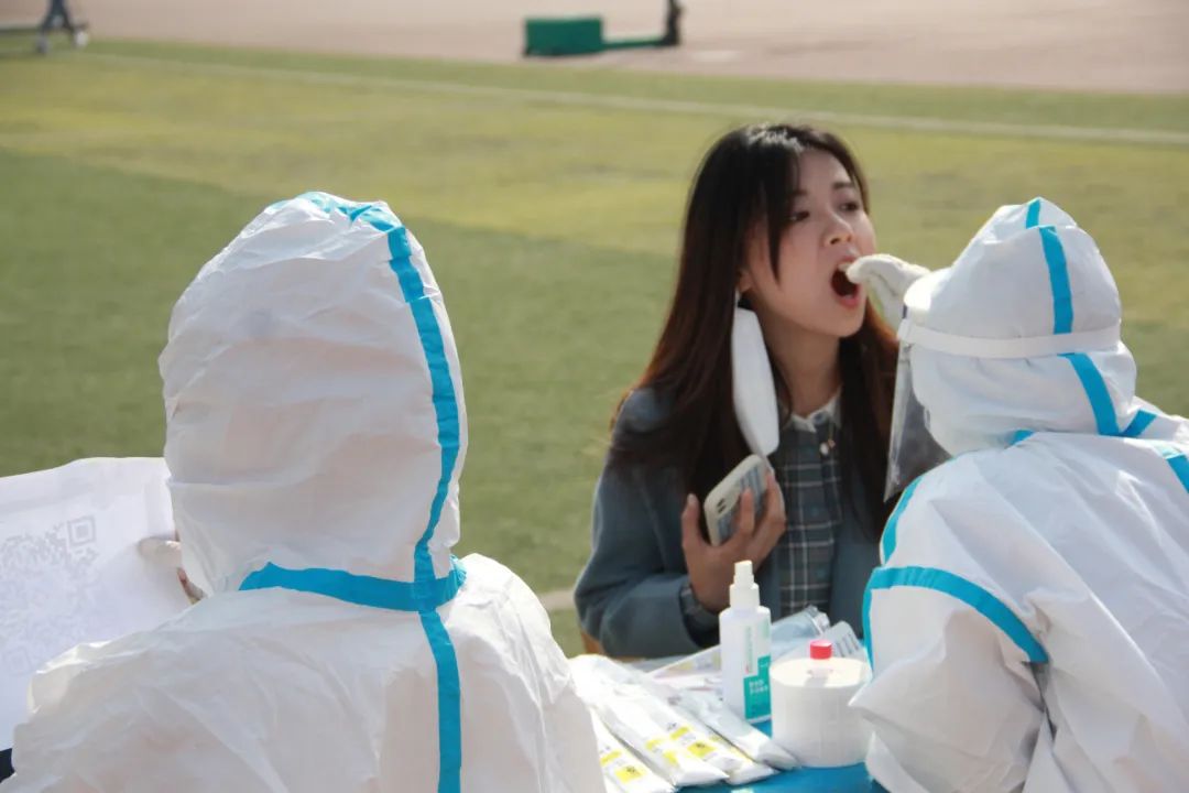 现场,所有参检人员在校学生会志愿者的协助下严格遵守防疫要求,佩戴好口罩,保持一米距离,提前准备好身份证,依次前往信息采集区进行信息采集,之后进行核酸采样。所有医护人员采样技术娴熟,同学们积极配合,使得整个过程井然有序,检测流程顺畅、快速、高效。
