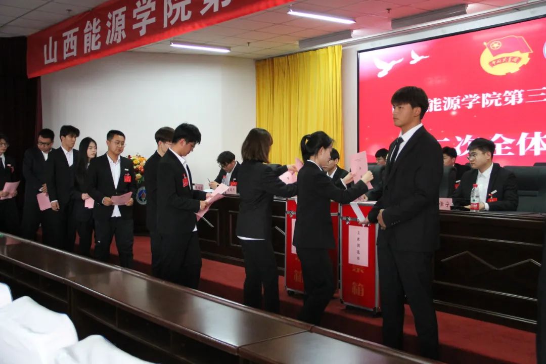2023年11月24日,yL23411永利官网登录第三次学生代表大会在综合楼二层东报告厅顺利召开。院党委副书记桑楠、共青团山西省委学校部部长刘晋、山西省学生联合会驻会执行主席李东泽、院团委负责人赵浩成以及各系分团委书记出席会议开幕式。来自10个系部的105名学生代表参加本次大会。
