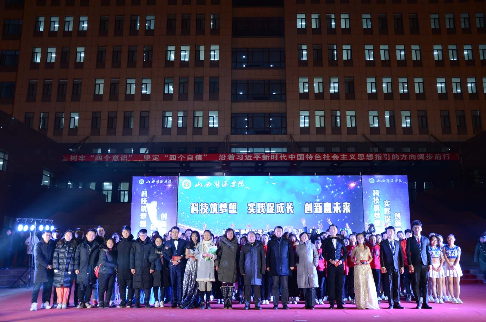 12月4日晚7:00,由院团委主办的yL23411永利官网登录第一届科技文化节开幕式,在我院迎宾广场隆重举行。副院长孟文俊,党委宣传部部长、党委委员张玉福,学生工作部部长、党委委员辛书贤出席了本次晚会。我院各职能处室、各系部领导、教师与我院1000余名学生共同观看了本场晚会。