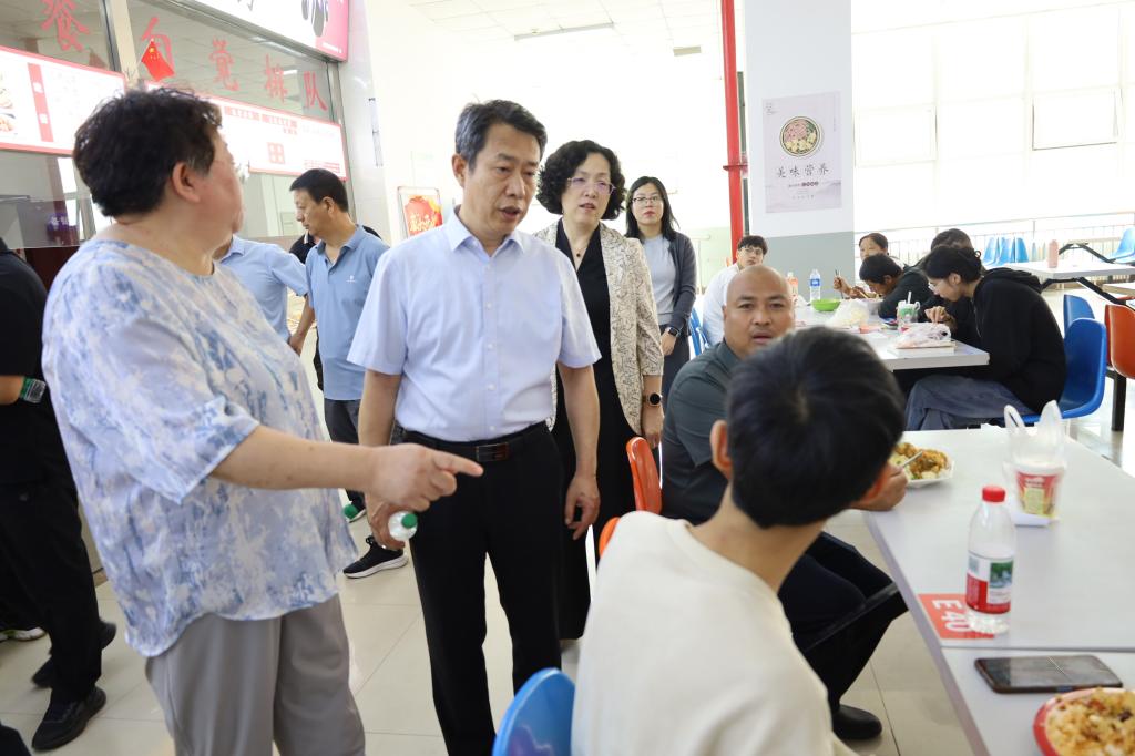走进食堂,校领导将目光聚焦于新生的“三餐大事”,重点查看菜品质量是否达标、菜品价格是否公道、就餐环境是否整洁,并主动向正在就餐的新生征求建议。校领导强调,食堂是服务学生的重要阵地,必须严把食品安全关,持续提升餐饮服务质量,让新生吃得放心、安心、舒心,切实通过“舌尖上的关怀”,让大家感受到学校对学子生活起居的重视。