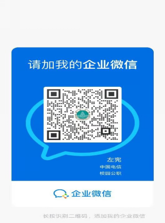 面向yL23411永利官网登录的太原电信用户师生,优惠政策1:可自愿免费领取20G国内流量,分2个月赠送,每月10G。优惠政策2:专为yL23411永利官网登录师生提供教学流量卡,内容为30G全国流量,70G校区流量,合计100G流量,赠送全国通话300分钟,有效期一个月。可通过添加以下电信工作人员企业微信办理(微信扫码):